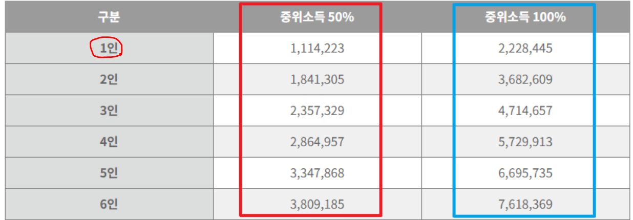 여기서 중위소득의 기준이 무엇일까라고 궁금해 하시는 분들이 있을텐데요. 아래와 같습니다.