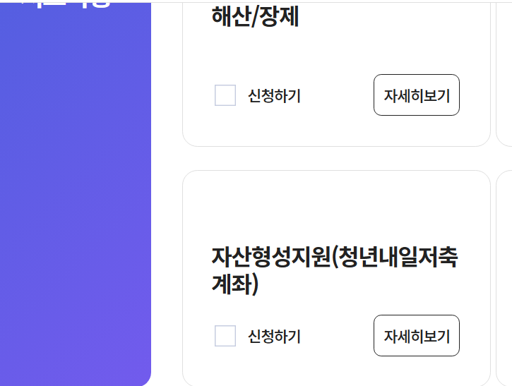 청년내일저축계좌가 있는데 신청하기 버튼을 활성화시켜줍니다.
